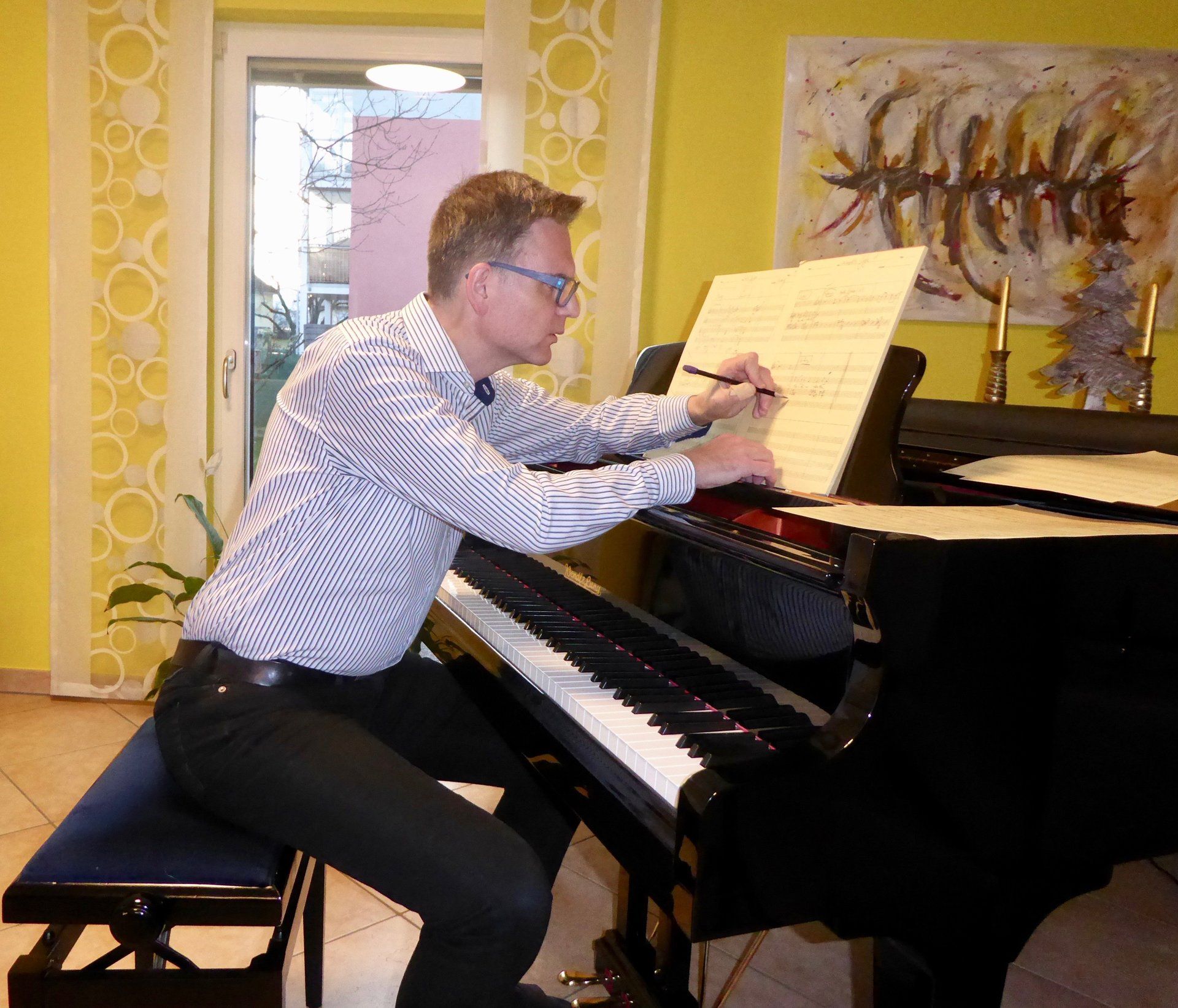 mit dem Schwerpunkt "Angewandte Komposition" für die Bereiche Film-TV-Theater, Medienmusik sowie Schul-Komposition, Komposition für Blasorchester, Chormusik, Instrumentation und Arrangement.